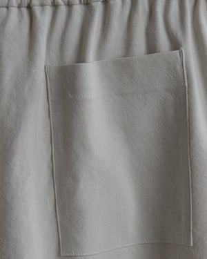 Deep inseam side pockets and flat back pockets provide utility without bulk while sturdy elasticated waistband + drawstring offer a custom fit through the day - and throughout the years - to furtherextend the lifespan of this garment.