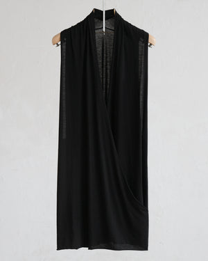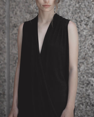 A long, sleeveless cross-over top or dress in a sublimely soft and fluid cotton/silk.