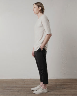 Self-hem finishing, elongated sleeves (which can be neatly rolled up) and our signature textured reverse stitch further elevate the aesthetic to transcend the ‘t-shirt look’.