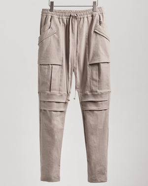 Every detail of the Escher Pant has been purposefully designed to marry form and function. The pant achieves a clean tailored look while simultaneously delivering exceptional utility, with a total of 10 pockets: Primary side pockets with integrated key and phone compartments for effortless organization; hidden zipper pockets, subtly layered between the main pockets and pant body, with welts for a refined finish; cargo-like pockets, seamlessly integrated into the body (not merely patched on) that accordion out for volume while preserving the pant’s elegant silhouette when closed; and back zipper pockets, discreetly secured beneath an extended folded seam.