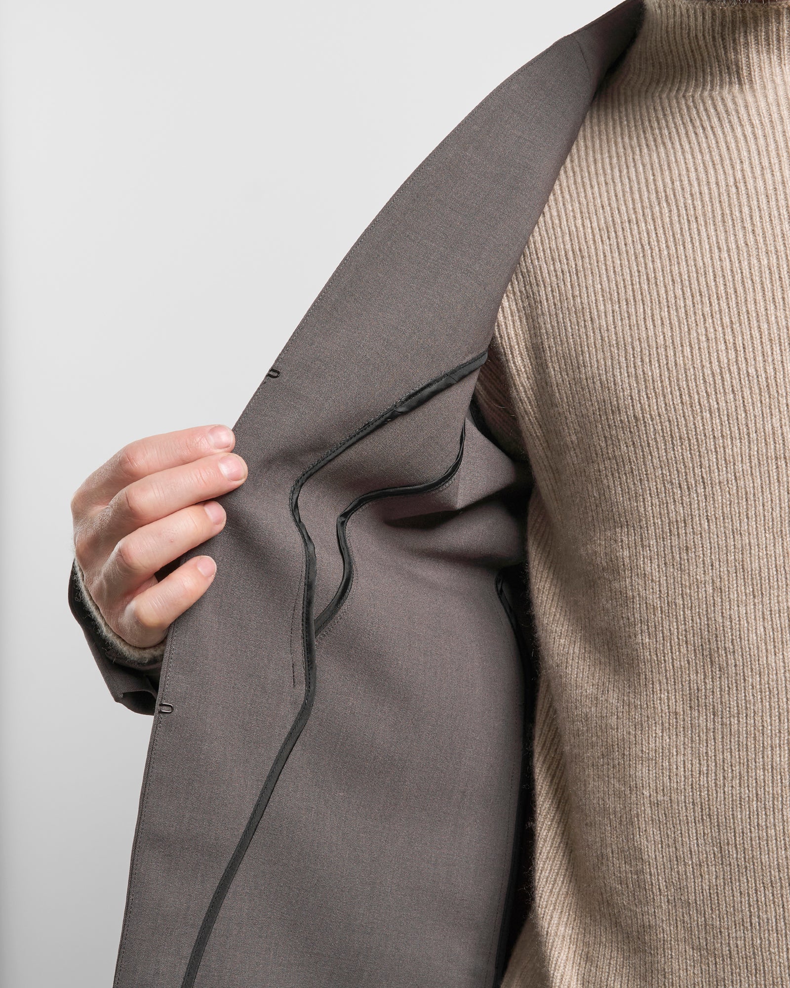 This edition is cut from a heavy-weight fine Italian suiting with ample stretch, giving it exceptional flexibility and full-range mobility. The wool brings its natural advantages—hydrophobic, antimicrobial, temperature-regulating—while this particular quality is notably fluid, wrinkle-resistant, and travel-ready: fold it into a carry-on and it springs back with composure.