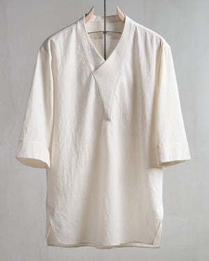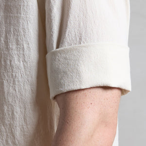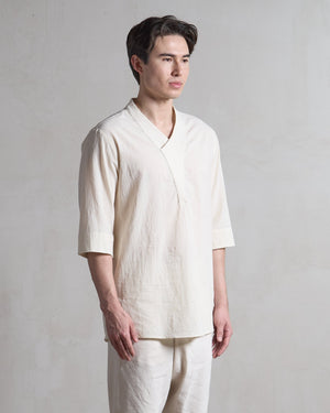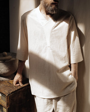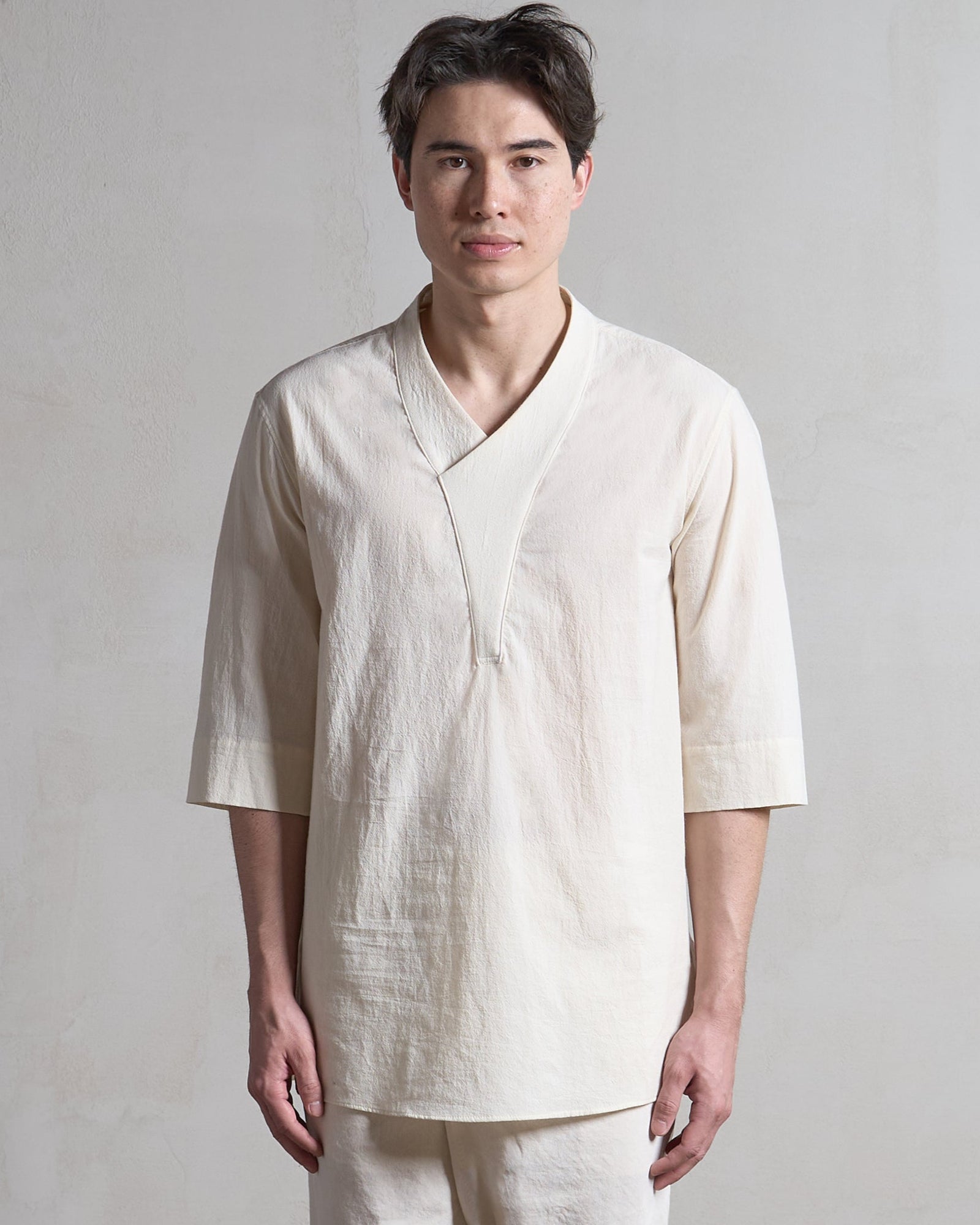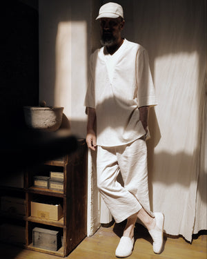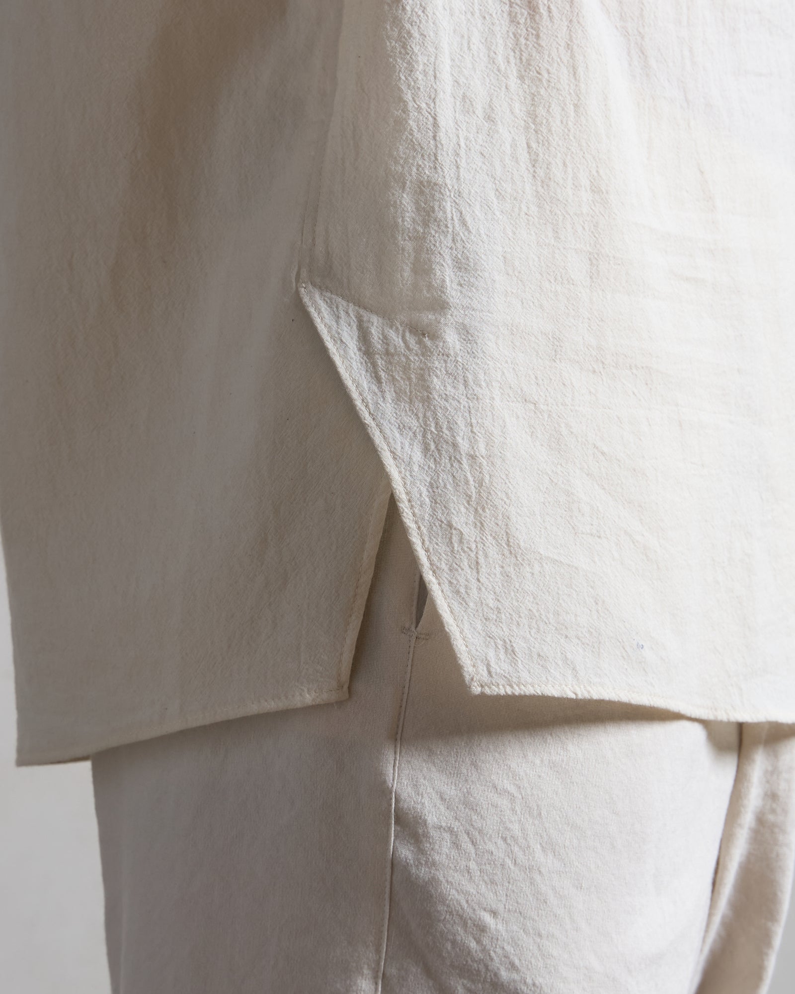 Cut in a Japanese organic cotton crepe with natural texture and quiet drape, the fabric resists wrinkles, softens with time, and gains subtle character through wear. Designed for warm climates and layered lives, it pairs effortlessly with tees or sleeveless tops for adaptable elegance.