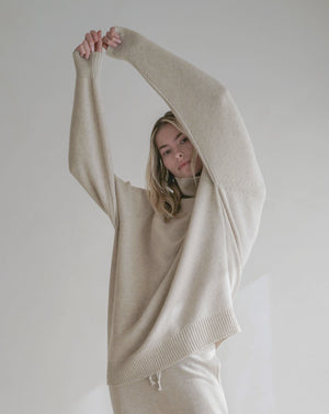 A sanctuary of comfort in an exceptionally soft natural cashmere, the fluid silhouette of this turtleneck is balanced by narrowing rib-finished sleeves.