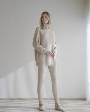 This is a fully-fashioned garment, meaning yarns are knit precisely to the pattern for a 0-waste production. The engineered pieces are beautifully knit-joined (not sewn) to be flat.
