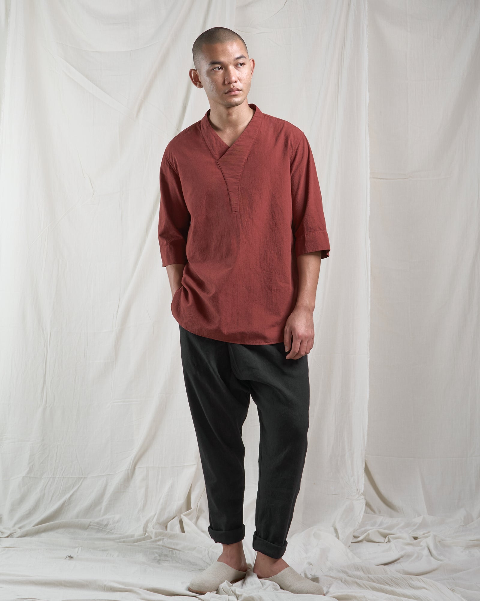Cut in a Japanese organic cotton crepe with natural texture and quiet drape, the fabric resists wrinkles, softens with time, and gains subtle character through wear. Designed for warm climates and layered lives, it pairs effortlessly with tees or sleeveless tops for adaptable elegance.