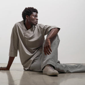 Cut in a Japanese organic cotton crepe with natural texture and quiet drape, the fabric resists wrinkles, softens with time, and gains subtle character through wear. Designed for warm climates and layered lives, it pairs effortlessly with tees or sleeveless tops for adaptable elegance.